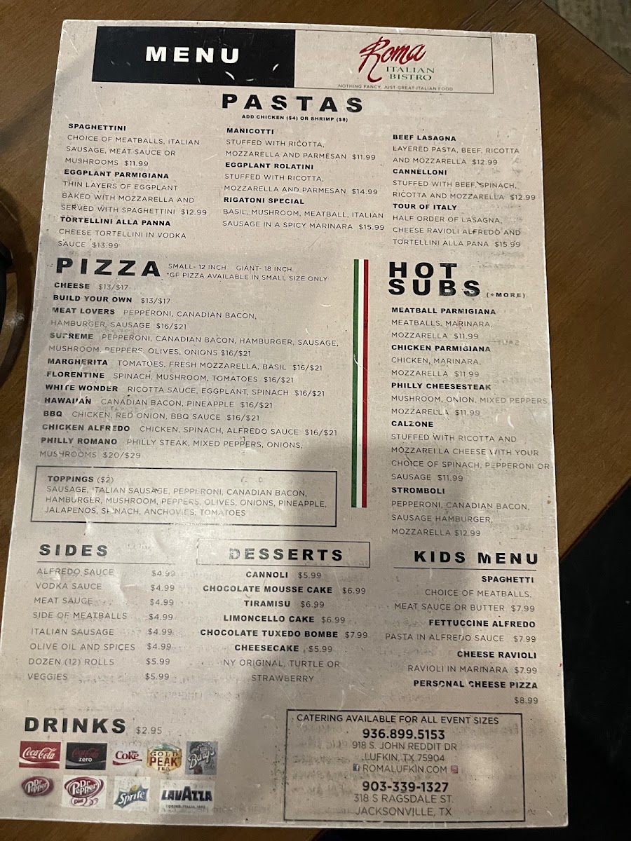 Welcome to Roma Italian Bistro - Lufkin, a hidden gem in the heart of Lufkin, Texas, located at 918 S John Redditt Dr. This delightful bistro brings together the authentic flavors of Italy with a warm, inviting atmosphere, making it a perfect spot for family dinners, special occasions, or a casual night out. With a phone line available at +1 936-899-5153, you're always just a call away from a satisfying Italian feast.